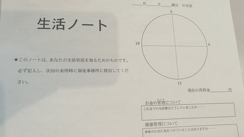 24時間の生活記録、お風呂に入ったか、お金の管理や食事の内容...数日おきに役所に提出することが求められる。これ大人に書かせるの?人権感覚どうにかしてる