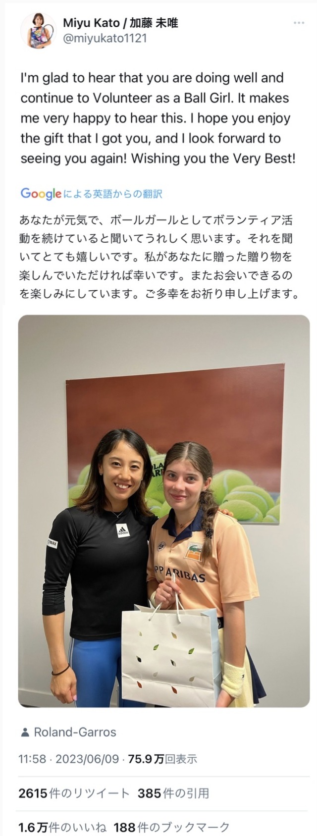 【朗報】加藤未唯さん、ボールガールと2ショットで有終の美を飾る Twitter Facebook はてブ LINE コピー 2023.06.09 スポンサーリンク 1: それでも動く名無し 2023/06/09(金) 16:56:22.27 ID:sUB1kzg9Mすい臓がん「ステージ4」ユーチューバー、ついに手術が決定「奇跡のよう」 最難関手術も「希望を持つ」 続きを読む