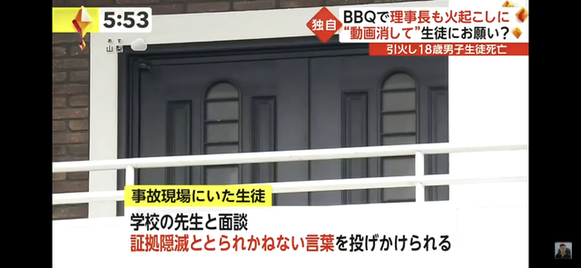 BBQで亡くなった生徒さん、服が炎上中に周りの人に布でバサバサやられて更に炎上した模様🔥
