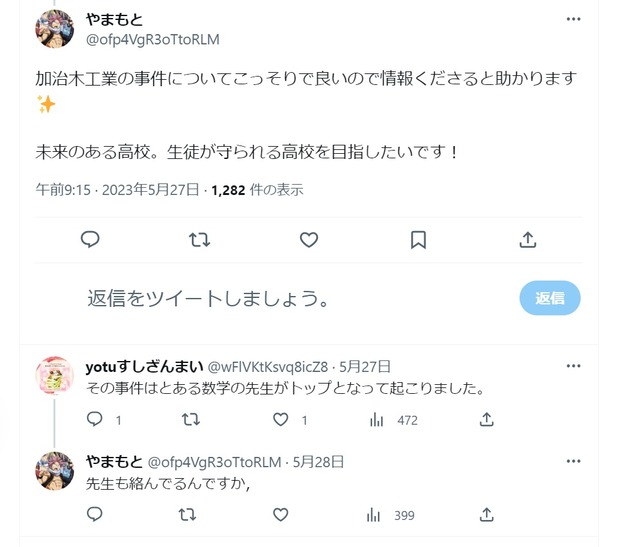 教師の関与についての話題はこのツイートのみなので真偽不明。