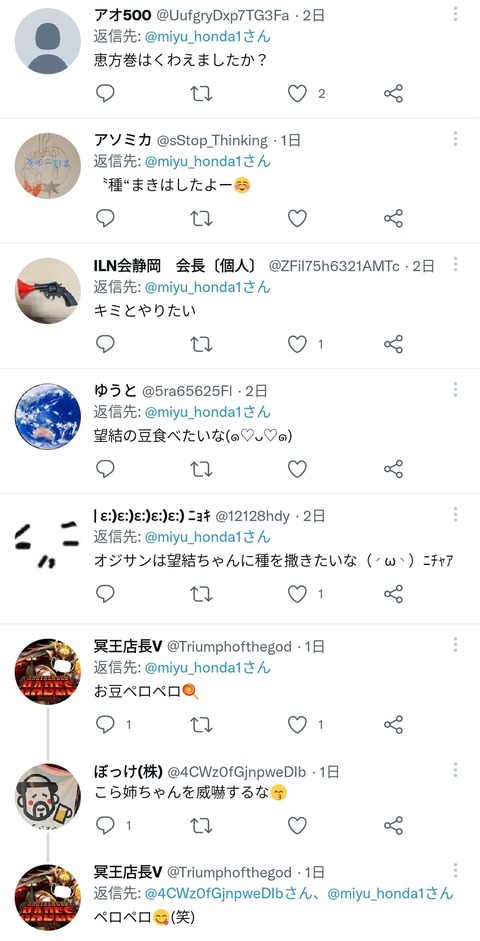 【画像】本田望結のリプ欄でセクハラオリンピック開催wwwwwwwwwwwww Twitter Facebook はてブ LINE コピー 2022.02.06 スポンサーリンク 1:以下、?ちゃんねるからVIPがお送りします:2022/02/06(日) 01:15:29.231 ID:NMdp001x0.net 続きを読む