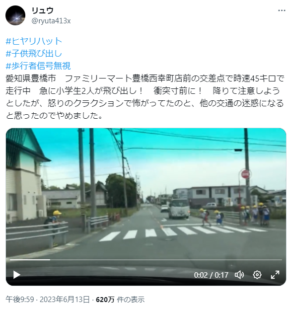 https://video.twimg.com/ext_tw_video/1668603778696884226/pu/vid/1280x720/mFqVdmJylwC0rWcE.mp4?tag=12#ヒヤリハット#子供飛び出し#歩行者信号無視