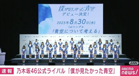 人気女性アイドルグループ「乃木坂46」の公式ライバルグループメンバー発表会が15日、東京・Zepp DiverCityで行われ、グループ名が「僕が見たかった青空」に決まったことが発表された。