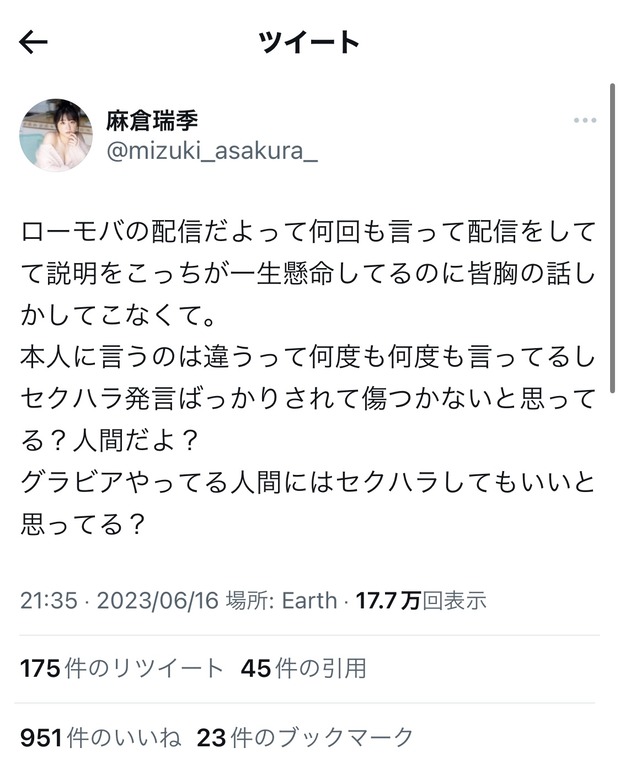— 麻倉瑞季 (@mizuki_asakura_) June 16, 2023