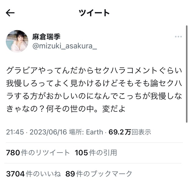 グラビアやってる人間にはセクハラしてもいいと思ってる?