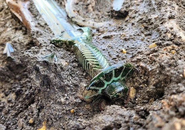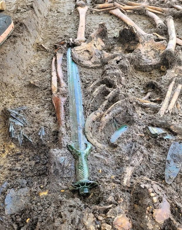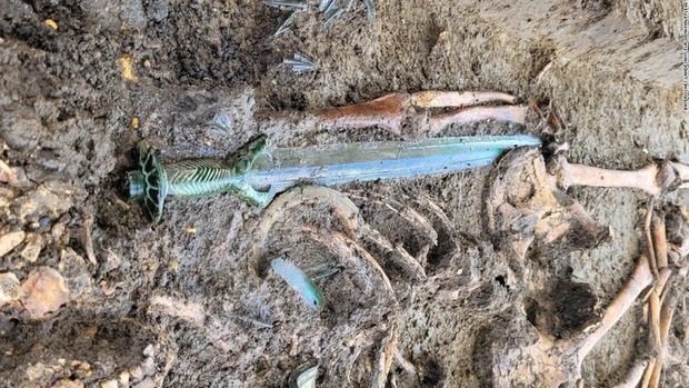 (CNN) ドイツ南部バイエルン州の埋葬地で、考古学者が八角形の柄(つか)を持つ3000年以上前の剣を発見した。