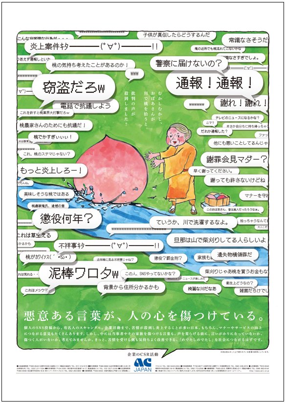 広告屋「桃太郎をこねくり回してセンセーショナルなCM作りたいなー。せや…!」 Twitter Facebook はてブ LINE コピー 2023.06.24 スポンサーリンク 1 : それでも動く名無し :2023/06/22(木) 22:25:40.81 ID:rd/Gfxg80転載元スレッド:https://nova.5ch.net/test/read.cgi/livegalileo/1687440340/ 続きを読む