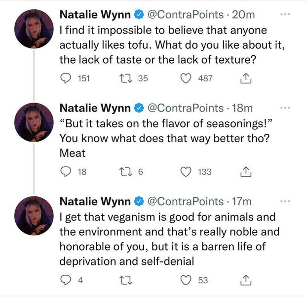 米国人人気YouTuberさん、世界に向けて真実を発信してしまう「豆腐(笑)肉でいいよね」 Twitter Facebook はてブ LINE コピー 2023.06.30 スポンサーリンク 1:2023/06/30(金) 06:57:05.22 ID:DyojW88Vaナタリー・ウィンさん「豆腐が本当に好きな人がいるなんて信じがたい、味も食感もないのになにが好きなの?」「"でも味付けするから!"って言う人もいるけど、それなら肉の方がいいよね?」「ヴィーガン主義が動物や環境にいいことはわかってるしとても立派だわ」「でもそれは失うものが多く自己否定的な不毛な人生だわ」転載元スレッド:https://eagle.5ch.net/test/read.cgi/livejupiter/1688075825/ 続きを読む
