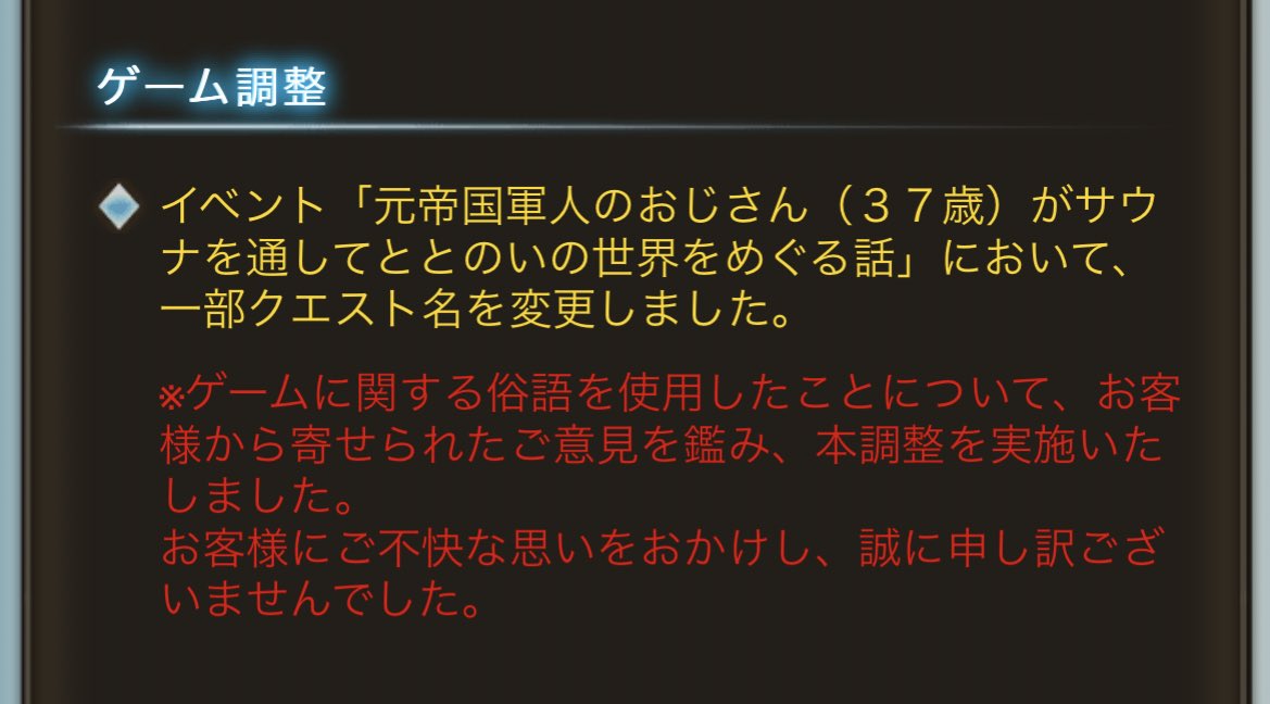 有名なグラブル関連ミームであるところの「古戦場から逃げるな」を公式がイベストマルチの名前という形でネタにしたら一部きくうしが不快感を示したため改名しました、と。なるほど #グラブル pic.twitter.com/DKQHNkR1O4