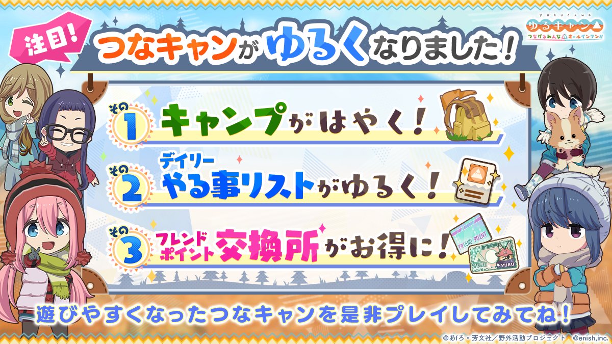 ゆるキャンのソシャゲ、遊びやすくなって新登場! Twitter Facebook はてブ LINE コピー 2023.07.01 スポンサーリンク 1: それでも動く名無し 2023/07/01(土) 02:23:22.57 ID:Ok5t27cY0 みんな帰ってきて https://twitter.com/yurucamp_game/status/1674661597879603200 10: それでも動く名無し 2023/07/01(土) 02:28:42.27 ID:PIFOgx3i0 そもそも内容がファンの望んでるものじゃないからどうしようもない 11: それでも動く名無し 2023/07/01(土) 02:28:52.82 ID:oKZxvOxA0 最初からそうしろ 続きを読む