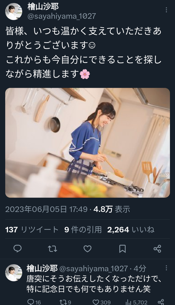 ウェザーニュース檜山沙耶さやっち、おさやの例のツイート やはり匂わせだったのかと話題 Twitter Facebook はてブ LINE コピー 2023.07.04 スポンサーリンク 1: それでも動く名無し 2023/07/04(火) 16:17:23.33 ID:RyhdX/djd このツイートの日に彼氏である西岡良仁が全仏で完膚なきまでに負けたので元気付けるためにこのツイートをした模様 おさや「日本に帰ってきたらご飯作って待ってるね」 【ダメ絶対】LSDの擬似体験動画、ガチでヤバイ 続きを読む