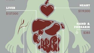 心臓:119000ドル(約952万円)、肝臓:157000ドル(約1256万円)