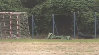 警察は、タヌキやキツネなどの動物が掘り起こして、グラウンドに運んだ可能性が高いとみている。