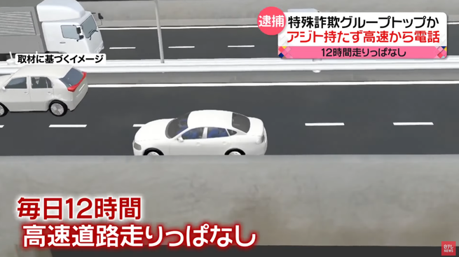 午前8時から午後8時まで毎日12時間、高速道路を走りっぱなしで詐欺のターゲットに電話。サービスエリアにも立ち寄らず、トイレは車内で済ましていたということです。