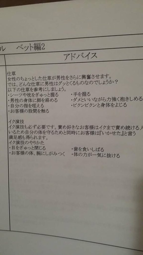 風俗の接客マニュアル…。自分だけには特別とか思ってるヤツwww