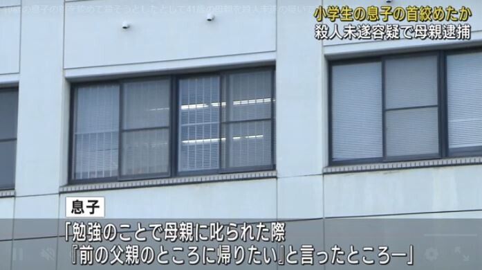小学生の息子の首を絞めて殺そうとしたとして、41歳の母親が逮捕されました。