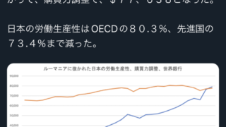 日本の労働生産性はOECDの80.3%、先進国の73.4%まで減った。 pic.twitter.com/pL6k2Soxcg