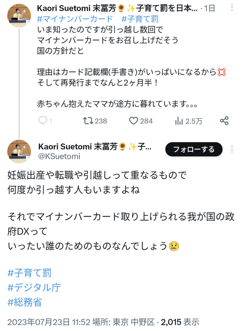 2回引っ越しした時点で再発行すりゃええんや。