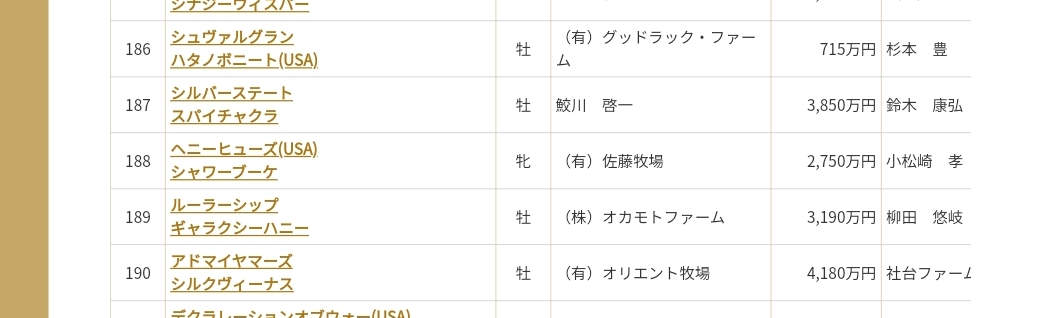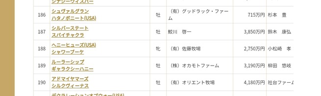 ルーラーシップ産駒を3190万円(税)でお買い上げ