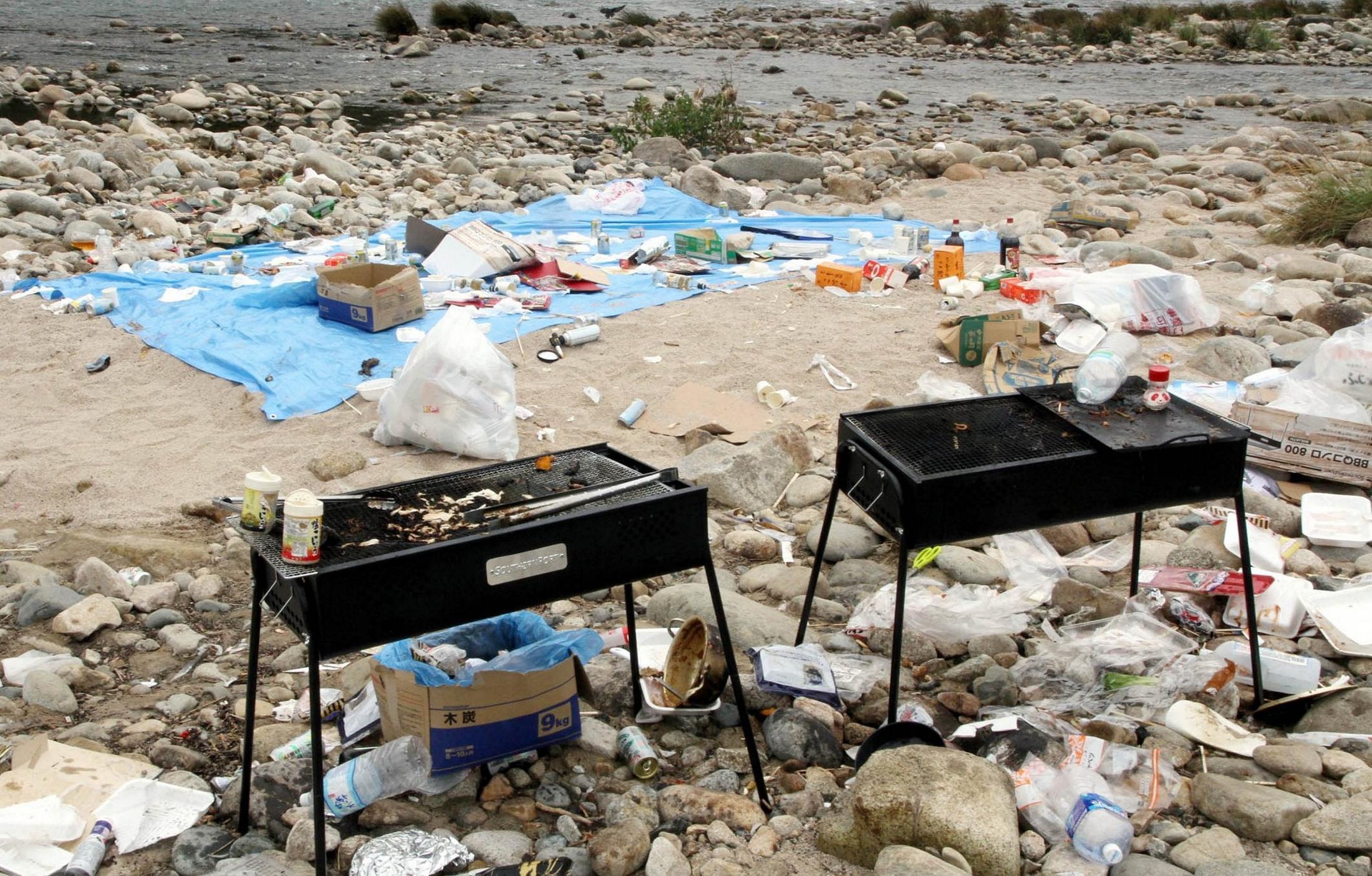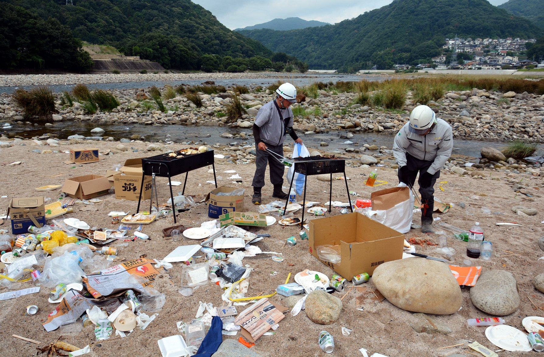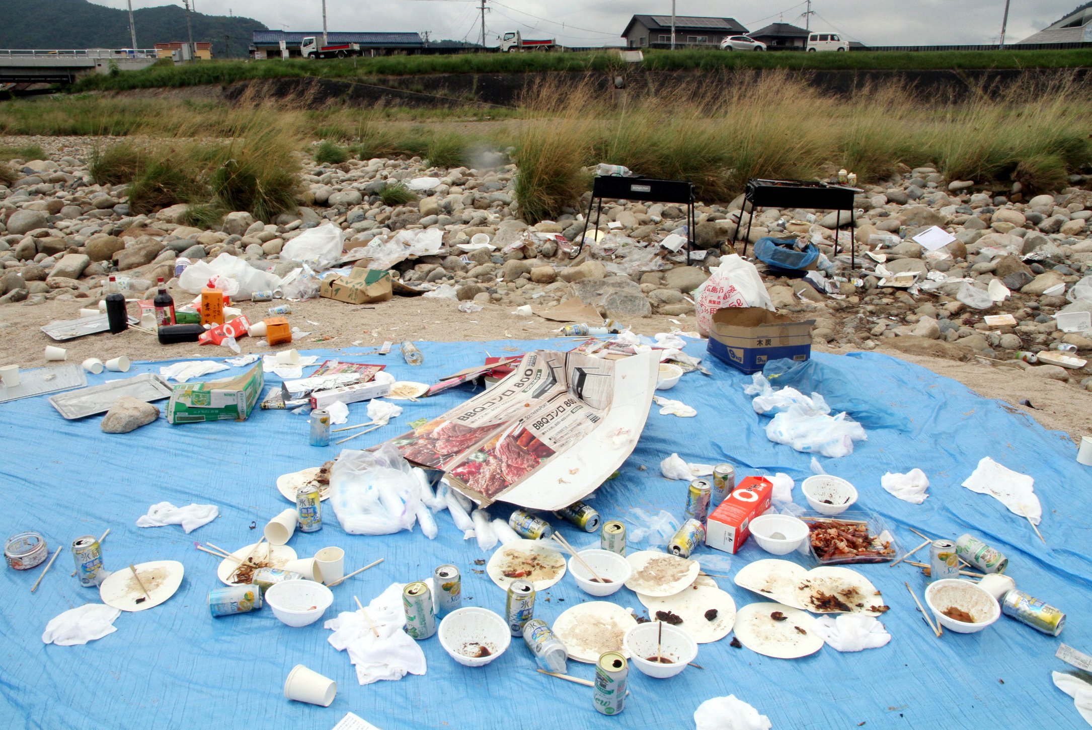 1級河川 太田川でBBQを行った男女20名がコンロや酒、生肉等を大量放置。周囲は悪臭。警察が捜査に乗り出し放置者を特定。廃棄物処理法に違反する可能性を示すと数人が渋々撤去に訪れた。昨年も同じ場所で同様被害。
