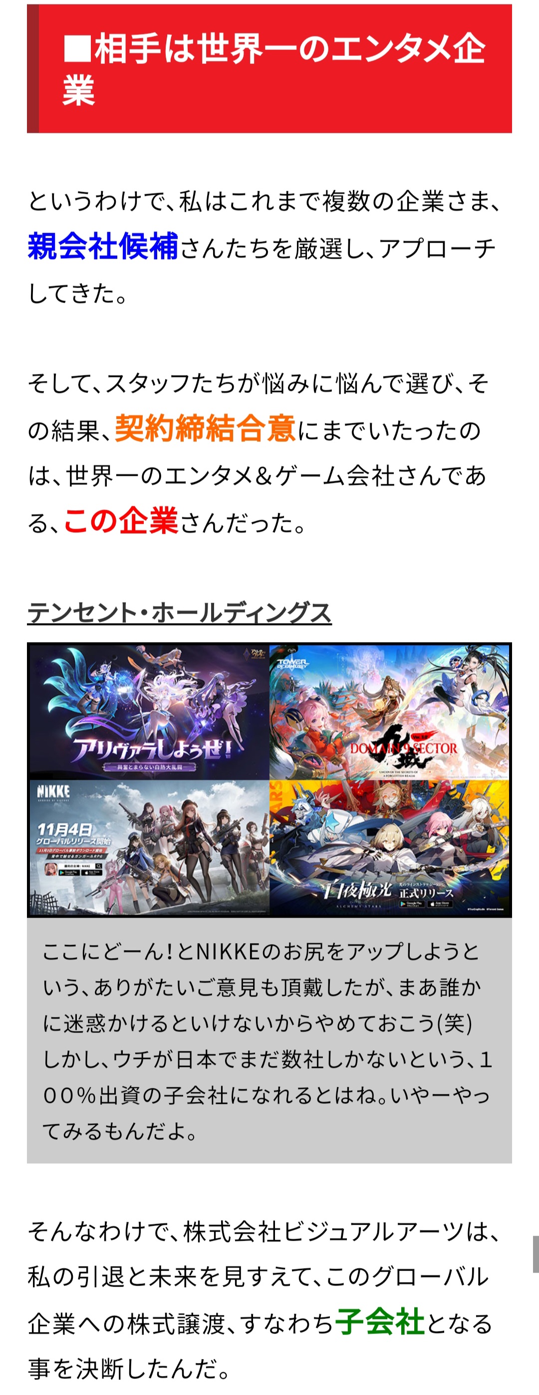 Keyブランドをもつ「ビジュアルアーツ」が「テンセント」の子会社になることが発表。馬場隆博社長は退任へhttps://t.co/nYV1avI7Gs