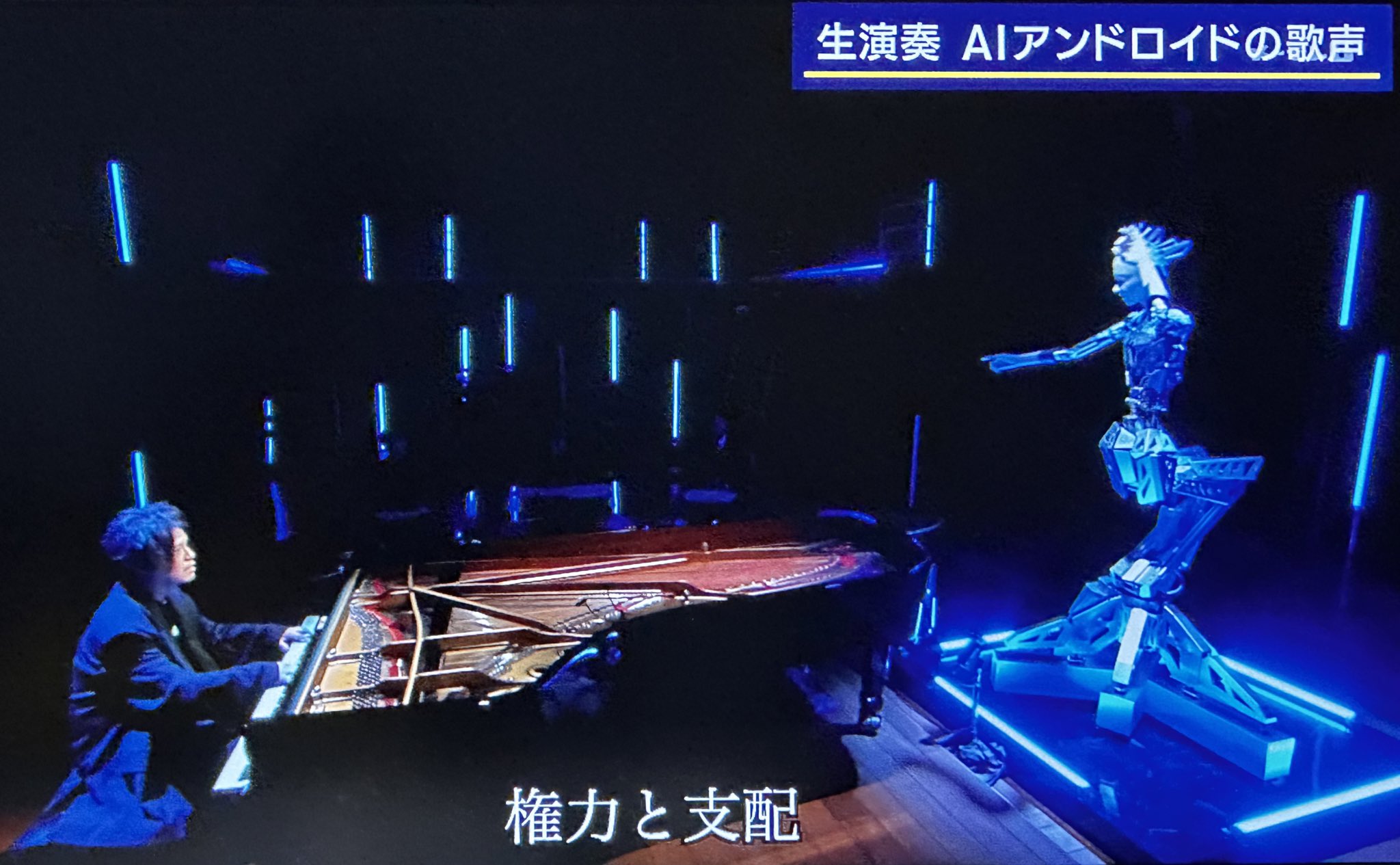 なんか報道ステーションで即興で歌を歌うAIアンドロイドとかいうのが出てきて当たり障りないこと歌うのかと思ったら「万博は来ない。」とか「北のミサイルが飛ぶ。」とか歌い出してしまいには「権力と支配。」とか言い出してめっちゃ笑った。 pic.twitter.com/q2bf1Pe1Th