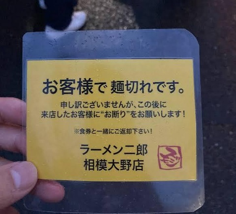 【画像】ラーメン屋「あなたで麺切れです。後から来る人断って。あとこのメモはちゃんと返せよ」 Twitter Facebook はてブ LINE コピー 2023.07.31 スポンサーリンク 1:以下、?ちゃんねるからVIPがお送りします:2023/07/30(日) 14:50:07.279 ID: ID:qU9v4J52d.net BE:126836511-PLT(15001) 2:以下、?ちゃんねるからVIPがお送りします:2023/07/30(日) 14:50:32.174 てめぇが言えよ 3:以下、?ちゃんねるからVIPがお送りします:2023/07/30(日) 14:50:38.598 何か問題あるか? 続きを読む