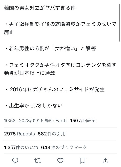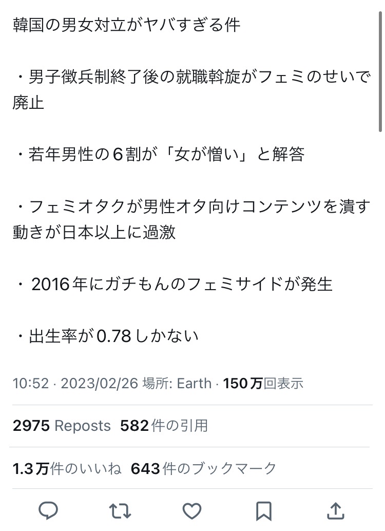 そりゃ韓国男子の過半数が女憎悪を極めるのも当然やわ