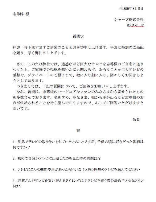 志尊淳さま。質問状をお送りします。いい加減にしろという自覚はあります。申し訳ありません。 pic.twitter.com/r4X082dQWw
