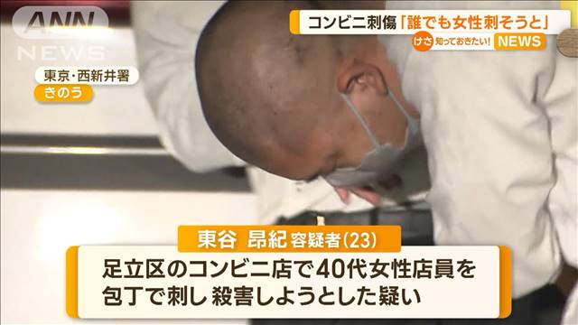 東京・足立区のコンビニで店員2人が刃物を持った男に刺された事件で、警視庁は、23歳の男を殺人未遂の疑いで逮捕した。