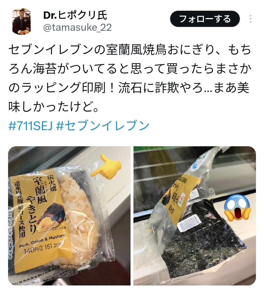 【企業努力】セブンイレブンおにぎり、ついに海苔を「印刷」し始めていた Twitter Facebook はてブ LINE コピー 2023.08.14 スポンサーリンク 1:2023/08/14(月) 13:28:58.29 ID:o2Hj08rN0●セブン、海苔なし「おにぎり」包装に海苔プリントで誤解も…弁当容器の透明化の真意 | ビジネスジャーナルhttps://biz-journal.jp/2023/07/post_355215.html/amp転載元スレッド:https://hayabusa9.5ch.net/test/read.cgi/news/1691987338/ 続きを読む