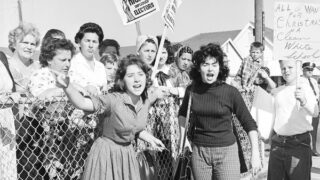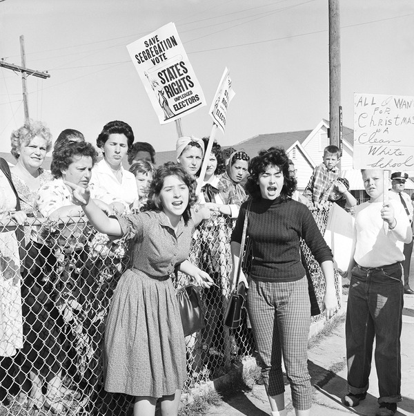 学校で人種隔離を続けることを求める白人女性ら。
