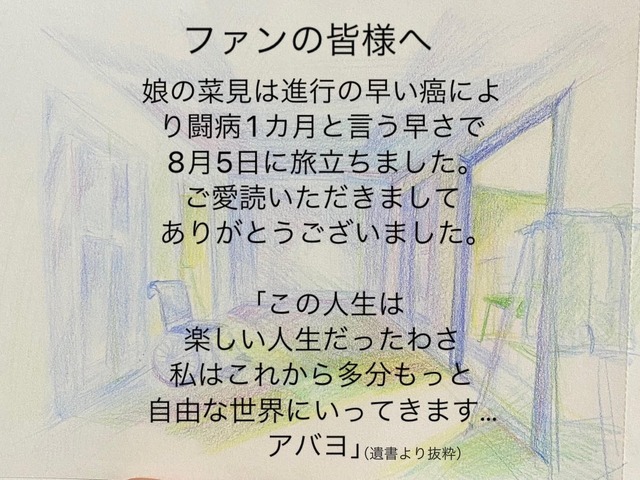 漫画家の佐野菜見さんが8月5日に逝去されました。