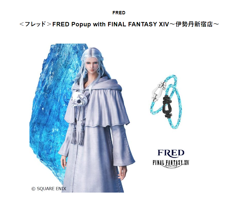 9月27日(水)より伊勢丹新宿店 本館1階 ザ・ステージで開催される「<フレッド>FRED Popup with FINAL FANTASY XIV~伊勢丹新宿店~」にて、特別な装飾と共にコラボレーションモデルの先行販売をいたします。