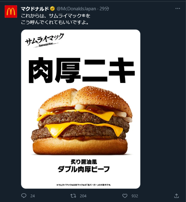 【画像】マクドナルドさん「これからはサムライマックをこう呼んでもいいよ」 Twitter Facebook はてブ LINE コピー 2023.08.17 スポンサーリンク 1: それでも動く名無し 2023/08/17(木) 07:31:21.16 ID:M+Jx/YGi0 これからは、サムライマックRをこう呼んでくれてもいいですよ。 pic.twitter.com/0ZxUTZ8XpQ— マクドナルド (@McDonaldsJapan) August 16, 2023 2: それでも動く名無し 2023/08/17(木) 07:31:47.73 ID:sYO1FhRfM よろしくニキーwww 13: それでも動く名無し 2023/08/17(木) 07:34:13.93 ID:+loAEpOs0 ニキ要素は? 続きを読む