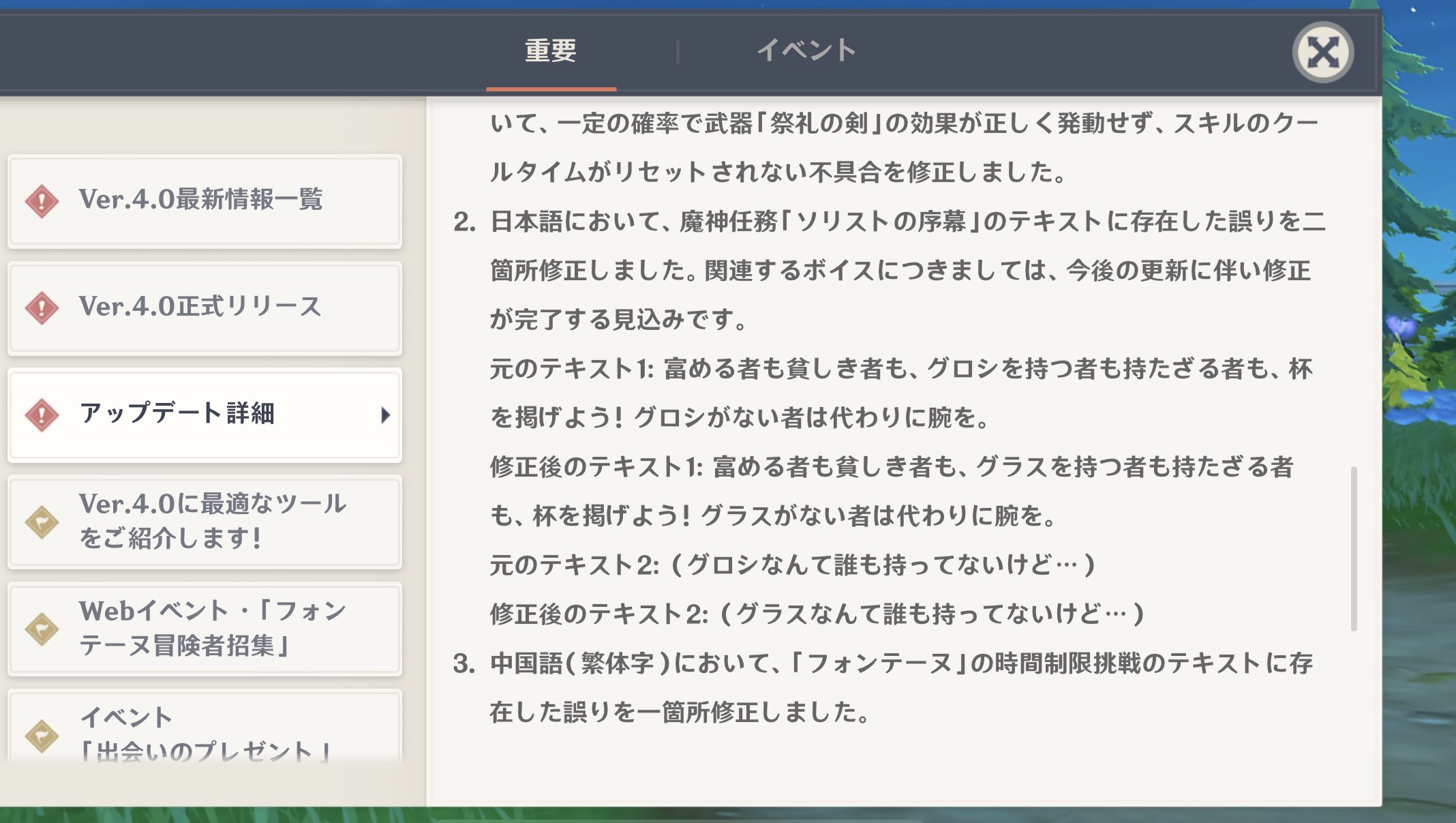【悲報】「原神」、グラスをグロシと誤訳してしまう Twitter Facebook はてブ LINE コピー 2023.08.18 スポンサーリンク 1: それでも動く名無し 2023/08/18(金) 16:24:26.50 ID:+r04V4w+d どうすんのこれ 2: それでも動く名無し 2023/08/18(金) 16:25:20.84 ID:S/PuIrnsa グロし! 8: それでも動く名無し 2023/08/18(金) 16:27:19.28 ID:y9beE5Zn0 造語まみれで誰も疑問持たなかったの草 続きを読む