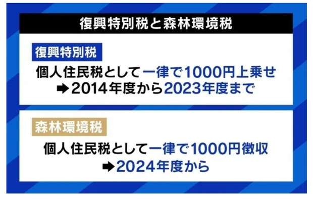 政府「復興特別税上乗せするぞ。2023年まで我慢してくれ」国民「わかった」👉結果www Twitter Facebook はてブ LINE コピー 2023.08.19 スポンサーリンク 1:2023/08/19(土) 13:47:44.88 ID:xth0mhHl02024年以降「森林環境税」に名前が変わる模様「消費税よりひどい」来年度から“1人1000円” 復興特別税→森林環境税に…使い道は?https://news.yahoo.co.jp/articles/90db9f3f67658502dc4cd4bc46539b9f86794ce2転載元スレッド:https://hayabusa9.5ch.net/test/read.cgi/news/1692420464/ 続きを読む