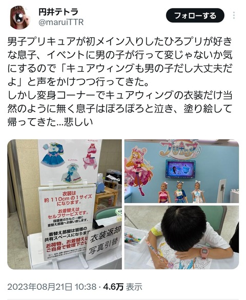 男の子プリキュアのコスプレが出来ると男児がワクワクで来場するも男の子プリキュアの衣装だけ準備しておらず男児は門前払いに