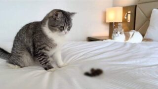 動画の内容は高級ホテルのペットと一緒に宿泊できる部屋に滞在中、朝目覚めたら隣のベッドで猫のもちまる君が排せつしてしまったというもの。しかし、炎上した理由はトイレの失敗だけではなく、排せつ物をすぐに片付けることなく動画を回し続けたことや、トイレに失敗したもちまる君が砂がない中、シーツを必死にカリカリと引っかいて排せつ物を隠そうとする様子が、「切なすぎる」と話題に。