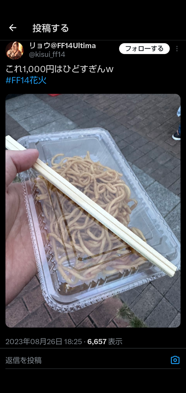 お祭りで1個1000円で売られてた焼きそばがこちらwwwwwwwwwwwwwwwww Twitter Facebook はてブ LINE コピー 2023.08.27 スポンサーリンク 1:2023/08/27(日) 13:04:36.30 ID:xhZdU27ca2:2023/08/27(日) 13:07:34.16 ID:xhZdU27ca詐欺やんけ転載元スレッド:https://nova.5ch.net/test/read.cgi/livegalileo/1693109076/ 続きを読む