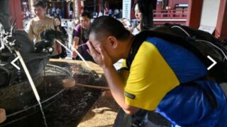 「連日の猛暑とはいえ、境内で水浴びをする中国人たちがいて驚きましたよ」