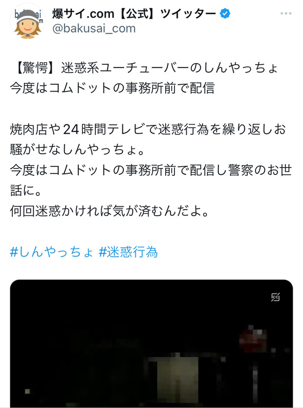 【驚愕】迷惑系ユーチューバーのしんやっちょ 今度はコムドットの事務所前で配信