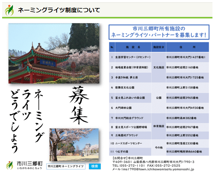 財政難の町が募集した11施設の命名権、応募「ゼロ」…市川三郷町「1社でも問い合わせを」