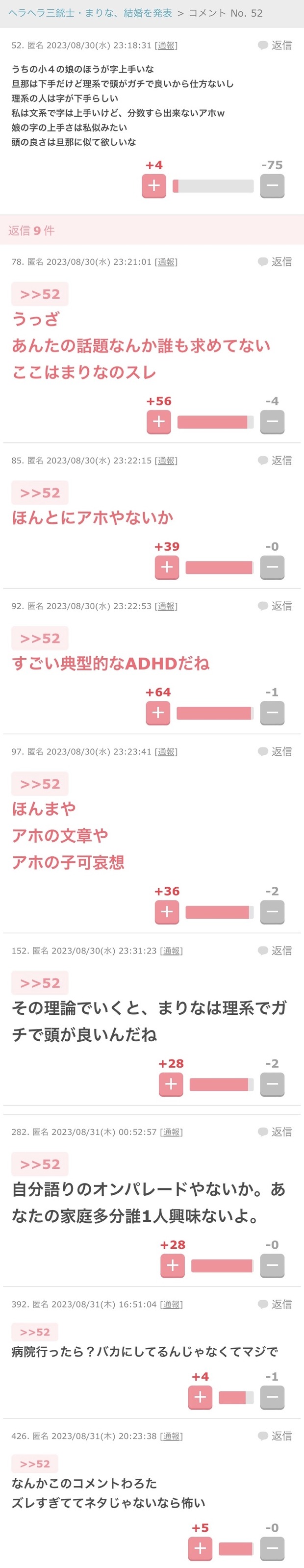 【笑報】旦那語りをした女、ガルちゃん民にボロクソに叩かれる Twitter Facebook はてブ LINE コピー 2023.09.04 スポンサーリンク 1:2023/09/03(日) 15:47:022:2023/09/03(日) 15:47:08草3:2023/09/03(日) 15:47:15嫉妬やんけ転載元スレッド:https://nova.5ch.net/test/read.cgi/livegalileo/1693723622/ 続きを読む
