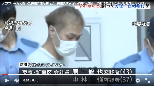 東京・新宿区の会社員・原修也容疑者(43)と中林強容疑者(37)は今年7月、豊島区・池袋駅近くで20代の男性に性的暴行を加えたなどの疑いで、先月25日に逮捕されました。