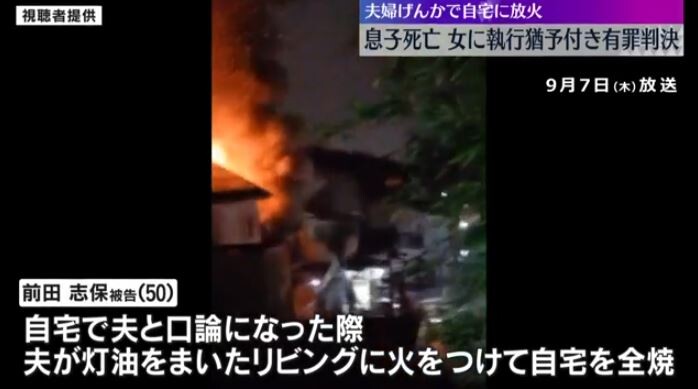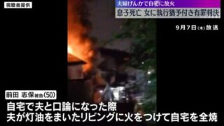 夫婦喧嘩で自宅に火をつけて全焼させ息子を死亡させた罪に問われている女に和歌山地裁は7日、執行猶予付きの有罪判決を言い渡しました
