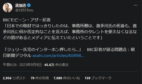 「ジュリー氏宅のインターホン押したら…」 BBC記者が語る問題点:朝日新聞デジタル