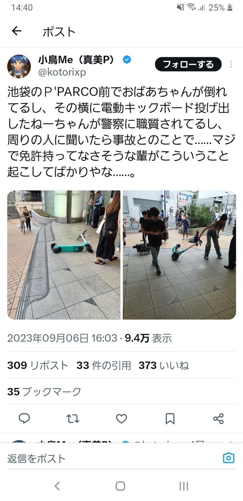 【画像】女子が電動キックボードでイキった結果wwwwwwwww Twitter Facebook はてブ LINE コピー 2023.09.13 スポンサーリンク 1:以下、?ちゃんねるからVIPがお送りします:2023/09/12(火) 02:20:41.085 ID:/t1w6t/Id.net 続きを読む