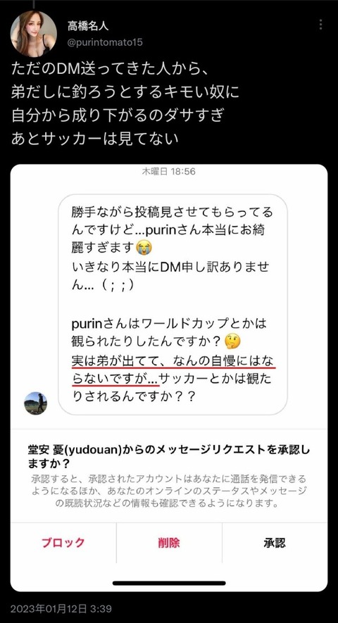 【悲報】元サッカー選手さん、インスタ美女をとんでもない手法でナンパして失敗してしまうwwwwwwwwwww Twitter Facebook はてブ LINE コピー 2023.09.13 スポンサーリンク 1:それでも動く名無し:2023/09/13(水) 19:09:31.11 ID:0RnwxLLoa ええ… 2:それでも動く名無し:2023/09/13(水) 19:10:09.70 ID:VYKlWMEod 草 5:それでも動く名無し:2023/09/13(水) 19:11:15.68 ID:kzmIkhcUa きっつ 続きを読む