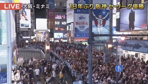 【画像】道頓堀、案の定阪神優勝でえらいことになるwwwwwwwwwwwwwwwwwwwwww